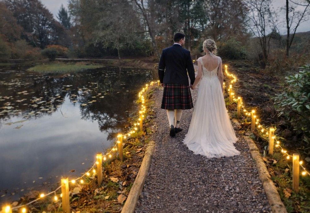 Within our 27 acres you can find picturesque places to hold your ceremony, from the rhododendron cavern or the lochan. We can facilitate micro weddings, elopements and handfasting ceremonies; and with 5 luxury self-catered suites you have the space to house up to 16 people to celebrate your union.